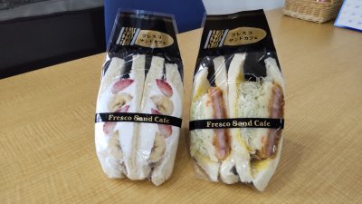 皆さま、こんにちは! 営業担当の田中です。 最近サンドイッチにはまっています。 今日は、東広島で有名なフレスコサンドカフェさんの 「ハムカツ」「いちごバナナ」を食べます。ボリュームがあり、おいしいです。