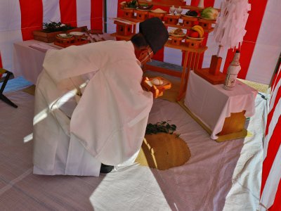 - 祝詞奏上(のりとそうじょう) 工事の安全と家の繁栄を祈る旨の祝詞を奏上する