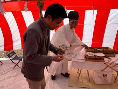 地鎮祭当日は神主さんに家を建てる土地に来てもらい儀式を行ってもらいます。