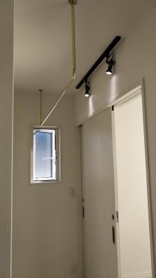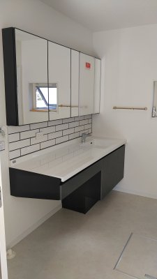 施工管理の石崎です。 江田島市の2棟物件を担当しています。 先週末、A様邸を無事にお引き渡しし、本日、お引っ越しをされているようです。 A様邸の見所は洗面所と洗面所に設けたランドリースペース。フロートタイプのお洒落な女優ライト登載の横幅1.8mの巨大な洗面台にタイルをあしらった、正にホテル仕様と言ったもの。 弊社の標準が0.75mサイズなので圧巻です。 そして洗面台の一角に設けたランドリースペースは一畳に真鍮の天井吊り下げ式を採用しています。 お洒落…(*^^*) が、ここで問題が…((+_+)) 着工後に採用になったので、当然ながら照明計画がなされておらず、ハンガーパイプの真上にダウンライトの計画で… 物を吊るすと影になって色柄がしっかり識別出来ないですよね( ゜Д゜) と、言うわけでご提案!普通に位置変更だけだとせっかくの洗面台のイメージがぶち壊しになってしまうと思い、下配線はそのまま生かし、ダクトレールに変更しカッコいいスポット照明をご提案させて頂きました!☺️ 採用して頂き有り難うございました! いえとち本舗東広島店では、様々なご提案をする事が可能です。 やりたいイメージをスタッフにお伝え下さい! どの様なご希望にも必ず御応えする事が出来るでしょう。 出来れば…設計段階に…(;'∀')しかし…天気良過ぎですね。 10月なのに外はまだ真夏… スカイブルーの青空… さて、今日は1日T様邸の土いじりします! T様、お引き渡しまで今暫くお待ち下さい…。