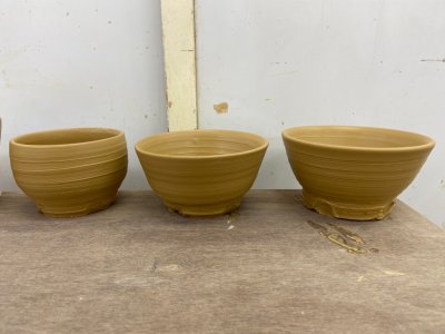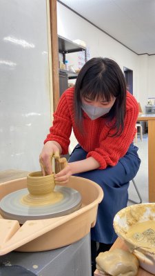 皆さんこんにちは。アフターの大本です。 先日ついに念願のろくろ体験をしました! 粘土を触ると思ったより硬かったです(*_*)職人さんの手つきを見ると簡単そうなのに、実際にやってみるとすごく難しい… 下手な自分に泣ける…(笑)一番左のマグカップと一番右の茶碗に決めました! マグカップは後から職人さんが取っ手を付けてくれました(^^) 真ん中の茶碗は失敗作なのでサヨナラしました(笑) 茶碗大きいな…と思っていましたが、 焼くと一回り小さくなるみたいなので良かったです(笑) 家に届くまで1~2ヶ月かかりますが、完成が楽しみです♪