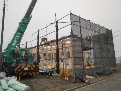めっきり朝起きるのがしんどい季節になってきましたね~((+_+)) 施工管理の石崎です。 今朝からS様邸の上棟を行っていました。平屋と言う事もあり、午前中で概ね形になりました。 しかし!さすがに内陸部! 今朝からお昼までずっと気温も低く、ずっと霧の中の作業でした。 手足も凍てつく寒さ((+_+)) 何毛に気温を計ってみると…4℃! 私は広島市内から来ているのですが、5~4℃も低いです(;'∀') 写真等の撮影班の女性人も、この気温には驚くばかり( ゜Д゜) とまぁこんな寒い中ではありましたが、無事に上棟も終わりました。 S様、おめでとうございます! 頑張って頂いた棟梁はじめ、大工様方、お疲れ様でした! 引き続き安全と高品質な作業に努めて参ります。