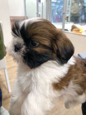 皆さんこんにちは! 総務の徳森です。 以前からこちらでうちの実家の犬のお話を度々させていただいていますが、 最近は実家に顔を出すのも自粛していて私の究極の癒しである 【もふもふ】ができず、 自粛疲れやテンションのだだ下がりを改善できずにいます…(:_;) そんな中、先日近くのペットショップに行きました。 すると、めちゃくちゃ【もふもふ】できそうなわんちゃんを発見!!生後約2か月のシーズー犬の男の子です。 もう私も子供たちもテンションMAX♪ 一気に疲れも吹き飛びました(^^) やっぱり私の究極の癒しです(*^^*) とはいえ、そのまますぐに連れて帰るわけにはいかないので、 現在、家族で検討中です(*^^)v♪ 我が家にもしも来てくれたら、 たくさん散歩に行って運動不足も解消したいです(*^^)v