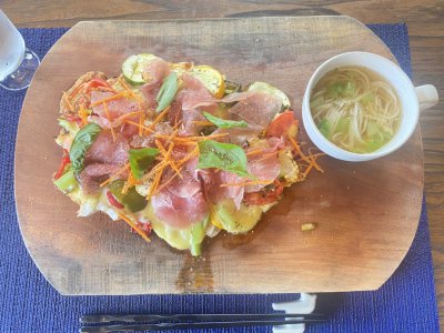 皆さんこんにちは!アフターの大本です(^^)/ 本日7/7は七夕ですね♪ 私のお願い事は毎年変わらず「健康に過ごせますように」です!(笑) 話しは変わりますが、先日とっても素敵なお店を見つけたんです…! 廿日市市にある「ひらきや」です。まるでトトロの森のよう… お店に入ってピザランチを注文しました。ピザに見えませんがピザなんです!(笑) 野菜もチーズもたっぷりで、 一口食べると「えっ、美味しい!」 と思わず声が漏れてしまうほど美味しかったです♪ 皆さんもドライブがてら行ってみてください! お腹も心も満たされますよ(#^^#)