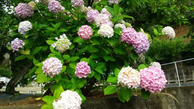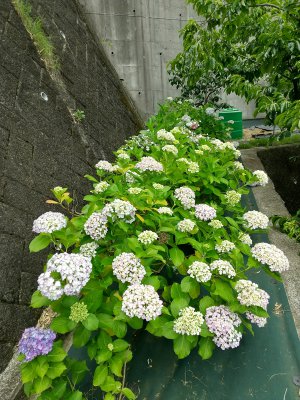 こんにちは。東広島店、営業アシスタントの田中です。 梅雨の時期も後半に入り、そろそろ本格的な夏が近づいてきましたが、皆さんはどのように雨の日を楽しまれていますか。 私の実家では、畑の角にいろいろな品種のアジサイを植えて、切り花にして飾ったりして楽しんでいます。これは、私が好きなポップコーンと言われる品種です。 鉢植えを地植えにしたら、数年で大木になりました。この梅雨シーズンの代表花『アジサイ』が、なぜ花の色が異なるのかご存じでしょうか。 アジサイの色の違いは、土の酸性度の違いによるものなんです。 土が酸性だと青いアジサイ、アルカリ性だと赤いアジサイが咲きます。 そして、土が中性だと、紫色になります。 日本では酸性の土壌になりやすいので、青色のアジサイが多いそうです。うっとうしい梅雨時期の庭を明るく鮮やかにしてくれるアジサイ。雨に濡れると花色がさらに色濃く鮮やかに見えます。 正しく剪定すれば植えっぱなしでも毎年美しい花を咲かせ、ほとんど手間がかかりません。さまざまな花色や品種の中からお気に入りを見つけて、庭の花木として育ててみると面白いですよ。
