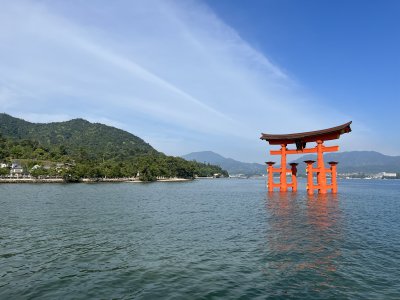 朝8時のフェリーに乗り込み、いざ宮島へ!