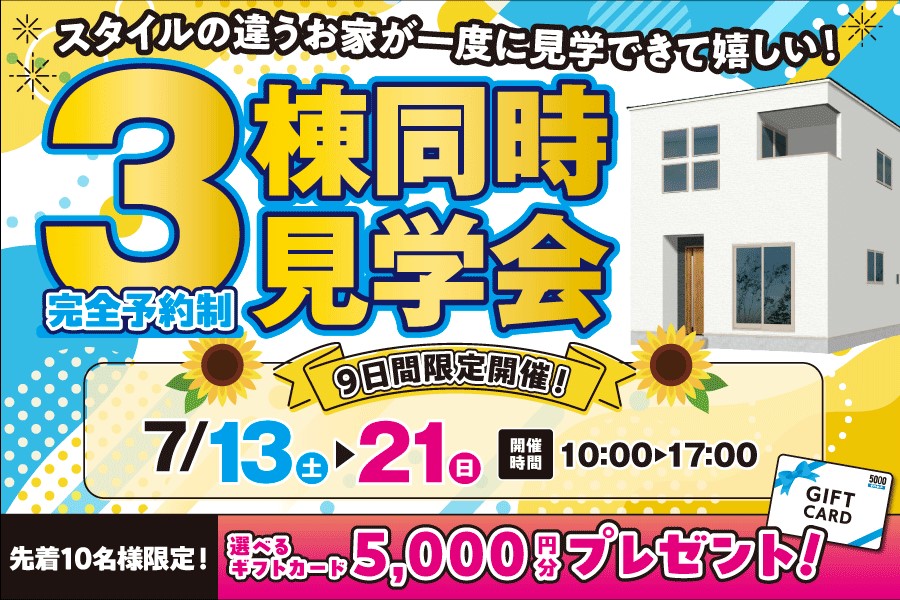 【江田島市】平屋も2階建ても見れるチャンス!3棟同時完成見学会!