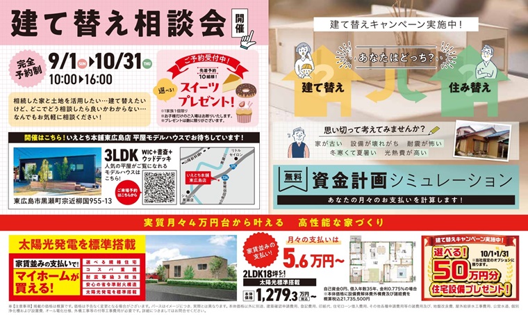 ただいま、建替えキャンペーン&相談会を平屋のモデルハウスにて開催中!