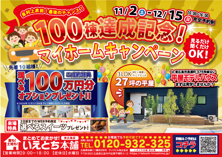【東広島市】100棟達成記念マイホームキャンペーン開催!