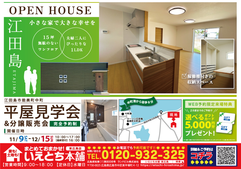 - イベント情報 |【江田島市】夫婦2人暮らしにぴったりな平屋見学会&分譲販売会