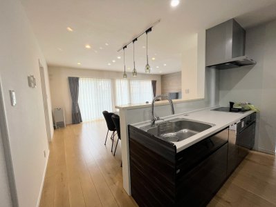 対面式のキッチンは家族でコミュニケーションをとりながら、同じ空間で過ごすことが出来ます。
