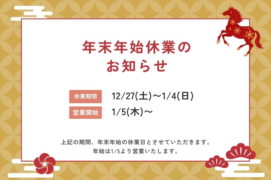 年末年始の休業期間について、以下の通りお知らせいたします。